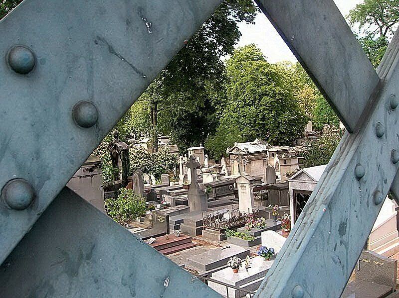 "Et je m'en vais Au vent mauvais Qui m'emporte Deçà, delà, Pareil à la Feuille morte." Chanson d'automne - Paul Verlaine LE CIMETIERE DES BATIGNOLLES Entrée principale : 8, rue Saint-Just. 17e arrondissement. Métro : Porte-de-Clichy 01 53 06 38 68 Avec une superficie égale à celle du cimetière de Montmartre, le cimetière des Batignolles, qui a ouvert ses portes le 22 août 1833, est la quatrième nécropole intramuros de la capitale. A l'origine il ne mesurait guère plus de 10 ares et s'étendait sur le territoire de Clichy. Il avait été crée pour l'inhumation des habitants de la toute nouvelle commune des Batignolles-Monceaux, rendue indépendante de Clichy par une ordonnance royale du 10 février 1830. Bien vite, le cimetière se révéla trop petit. En 1847, un premier agrandissement, du côté des fortifications construites deux ans plus tôt, permit de porter sa surface à prés de 4 hectares. Annexé à Paris en 1860, il subira, vingt-trois ans plus tard, un second accroissement d'environ 7 hectares. C'est de cette époque que date l'entrée actuelle. Depuis, la nécropole est restée pratiquement inchangée, hormis la construction du périphérique qui la surplombe en partie depuis 1969. Aujourdíhui, avec ses 15 000 sépultures, le cimetière des Batignolles, qui est doté d'un funérarium à son extrémité nord, est aussi un bel espace vert d'environ 11 hectares, ombragé par plus de 800 arbres, essentiellement des marronniers, auxquels s'ajoutent une centaine d'érables et quelques frênes, sophoras et platanes.
