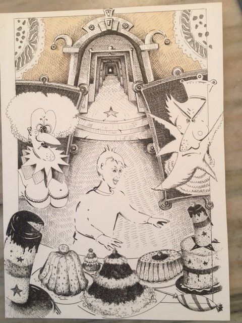 Au terme d’un voyage de vingt-six jours en train, Fédal arriva au manoir de la Cour Glacée. Celui-ci était situé au cœur d’une forêt sombre, au pied de montagnes éternellement enneigées. Son hôte, un vieillard solitaire qui régna jadis sous le nom d’Anagram’ 1er, l’accueillit avec beaucoup d’égards et une joie non dissimulée. Enfin quelqu’un qui allait pouvoir lui peigner sa longue barbe blanche ! Car il faut dire qu’à la suite des guerres au cours desquelles il avait été dépossédé de son royaume, l’ex-roi s’était retrouvé avec les deux bras coupés.