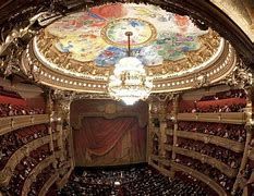 Mentionnons enfin la grande salle à l’italienne rouge et or, d’environ 2 000 places assises, avec son parterre, ses baignoires, ses cinq étages de balcons, sa galerie supérieure et sa scène construite en planches de chêne de 1.350 mètres carrés de superficie. Ici, huit paires de colonnes cannelées supportent le plafond en forme de coupole au centre duquel pend un grand lustre monumental en bronze et cristal dessiné par Charles Garnier en personne. En 1964, à l’instigation d’André Malraux, ministre de la Culture, Marc Chagall a recouvert le plafond d’une composition s’inspirant de neuf opéras ou ballets célèbres : la Flûte enchantée, Tristan et Yseult, Roméo et Juliette, Pelléas et Mélisande, Daphnis et Chloé, l’Oiseaux de feu, le Lac des cygnes et Boris Godounov.