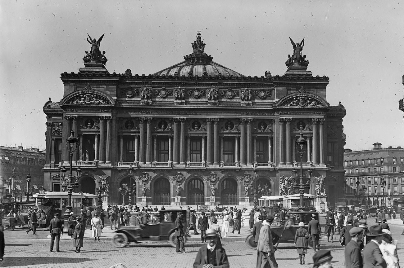 Le chantier du nouvel opéra, commencé en 1861, dura près de quinze ans. Pièce centrale du bouleversement urbanistique parisien orchestré par le préfet Haussmann, ce monument emblématique du Second Empire ne fut officiellement inauguré que le 5 janvier 1875 par le président de la République Mac Mahon. Tandis que l'avenue de l'Opéra, qu’Haussmann avait voulu totalement dépourvue d’arbres pour ne pas nuire à la perspective sur la façade principale du bâtiment, ne fut achevée qu'en 1879.