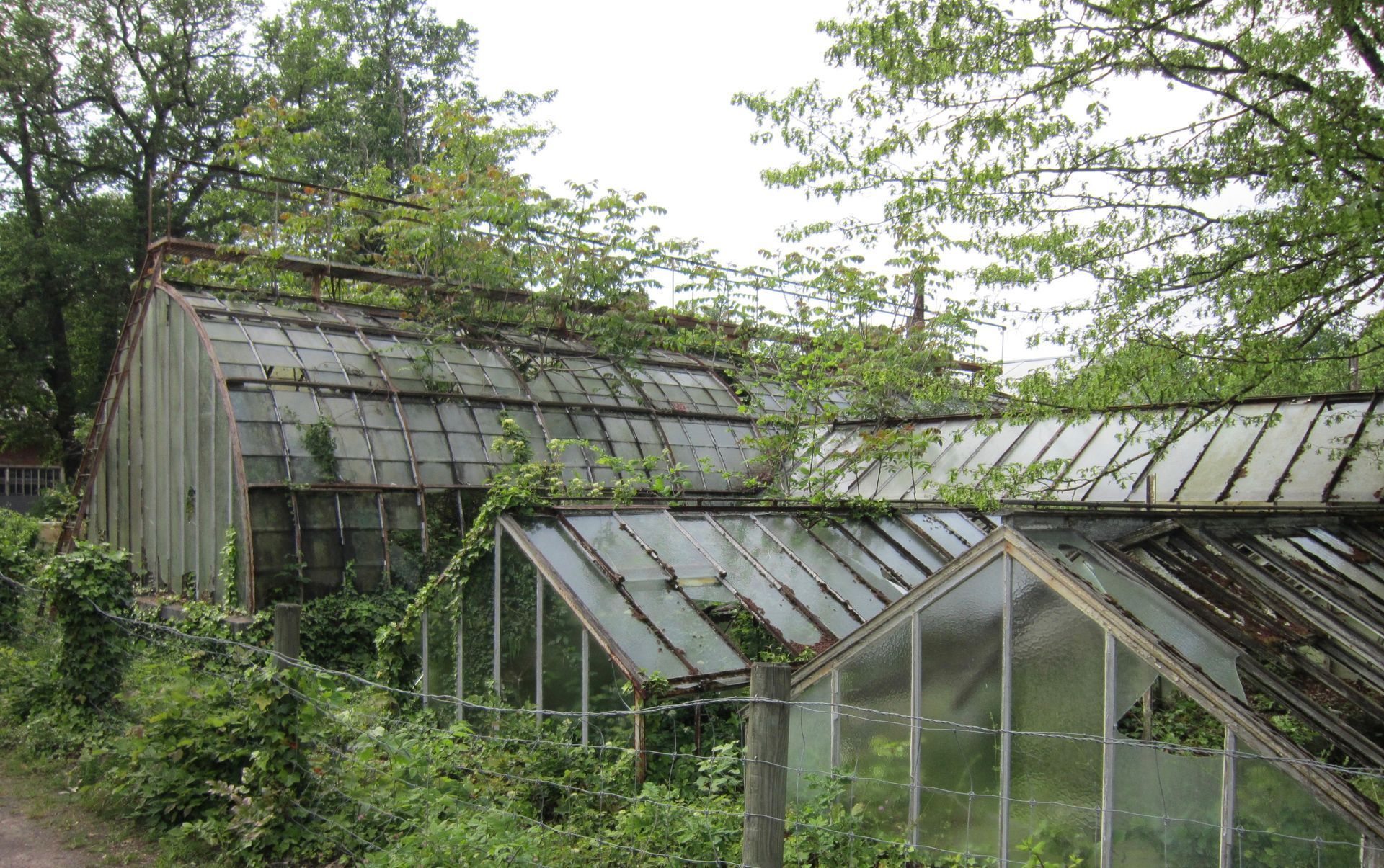 Tout comme les anciennes serres, construites en 1899 à l'angle sud-ouest du primitif jardin d'agronomie tropicale, et qui n'abritent plus désormais que les mauvaises herbes.