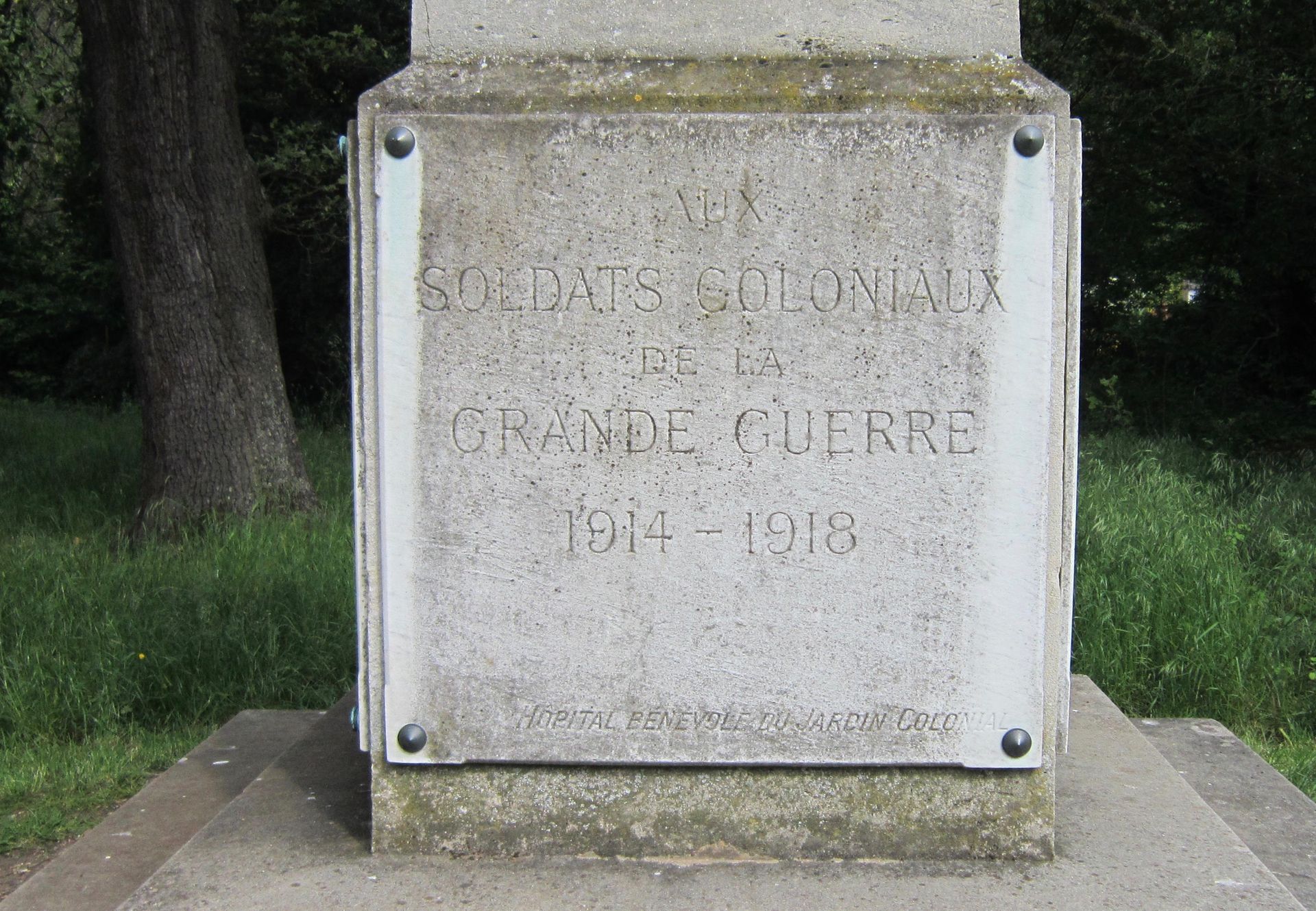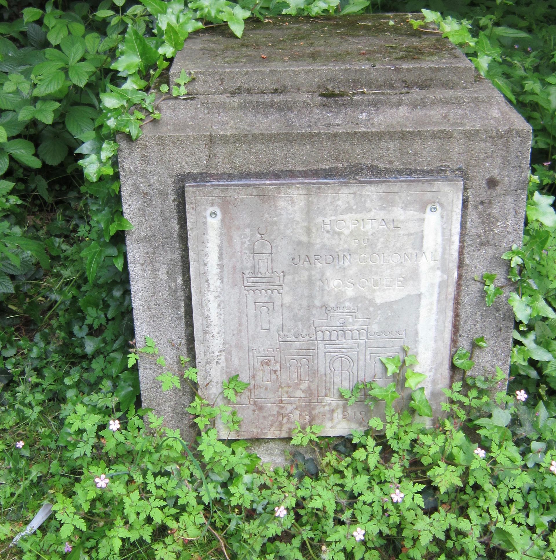 Une simple plaque de marbre indique l'emplacement initial de l'ancien hôpital colonial et de la mosquée du bois de Vincennes.