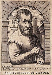 Jacques Barozzi, dit le Vignole (1507-1573), fut l’un des plus grands architectes de la Renaissance. Après une formation de peintre à Bologne, il se dirigea vers l’architecture. Là, il fut repéré par le Primatice. Il partit très vite à Rome, étudier les monuments antiques. Entre 1541 et 1543, il œuvra à Fontainebleau, à la demande de François 1er. Puis il retourna dans la ville sainte, où il exercera jusqu’à sa mort. Il y fut l’élève de Michel-Ange et travailla pour le pape Jules III. Il laisse de nombreux témoignages de premier plan : églises, palais, villas, parcs et jardins, fontaines…Parmi ses nombreuses réalisations citons : la villa Giulia, d’influence maniériste ; la chapelle San Andrea sur la Via Flaminia, au plan ovale, annonciateur du baroque ; le palais Farnese de Caprarola ; la villa Lante à Bagnaia et, surtout, l’église du Gesù, à Rome. D’un classicisme rigoureux et élégant, il s’attache aux moindres détails. Théoricien, sa Règle des cinq ordres, ouvrage fondamental, eut une large influence en Europe jusqu’au XIXème siècle. Homme austère, exigeant avec ses collaborateurs, dont son propre fils, architecte également, il était capable de tenir tête à ses illustres commanditaires : on disait de lui qu’il n’était pas très doué pour la carrière de courtisan. Est-ce cela qui lui valut, malgré une vie active intense, de mourir pauvre ? Mais sa renommée était telle, que sa dépouille fut directement conduite au Panthéon de Rome, suivie par les principaux artistes de l’époque ! Ses biographes mentionnent qu’il était le fils de Bartolomeo Barozzi, un « blasonato nobile », qui, après des revers de fortune, s’était réfugié à Vignola, dans le duché de Modène, en provenance de Milan.