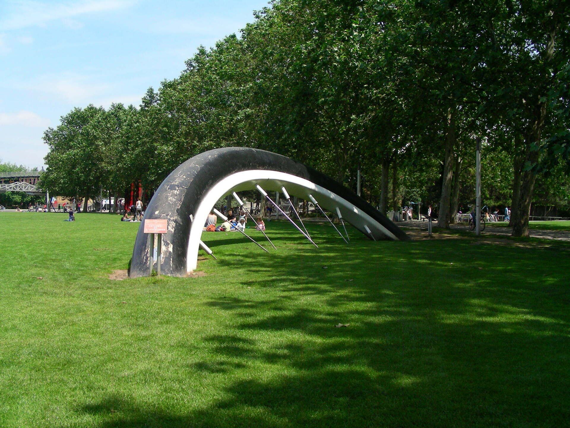 Le parc de la Villette a été conçu par Bernard Tschumi qui a défini plusieurs tracés indépendants qui se superposent les uns aux autres en s’entrecroisant : les galeries, les prairies, les jardins et les Folies.