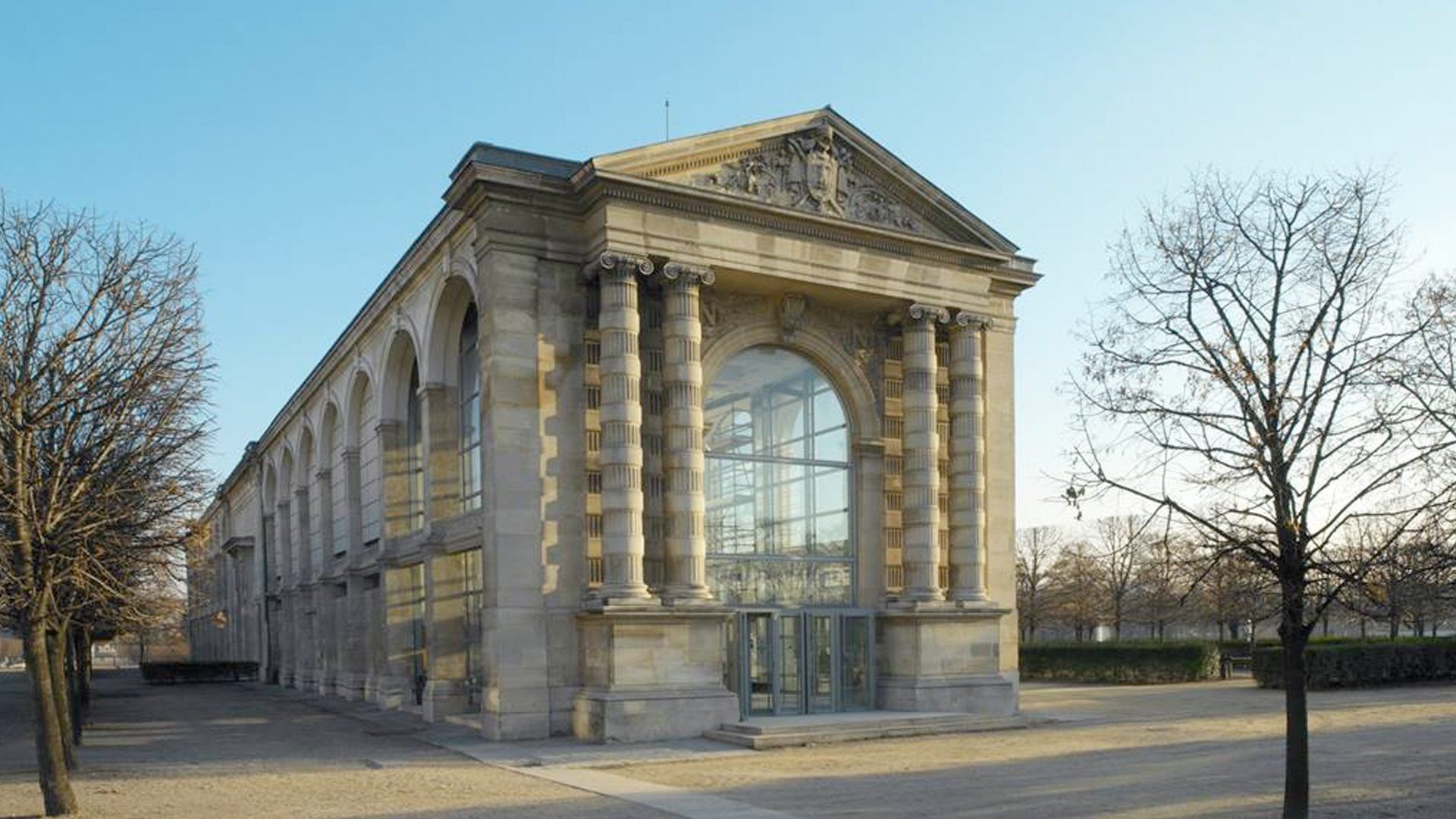 Située à l’extrémité ouest de la terrasse du jardin des Tuileries, en surplomb de la rue de Rivoli, elle a été conçue sur le modèle du bâtiment voisin de l’Orangerie, élevé dix ans plus tôt, côté Seine.