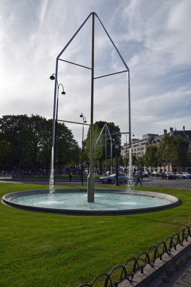 Les six bassins circulaires en marbre qui ornent les massifs floraux du Rond-Point des Champs-Elysées, aménagés en 1863 par Gabriel Davioud s’étaient enrichis, en 1958, de lamelles de verre, en cristal de Baccarat, d’où jaillissait l’eau en autant de gerbes majestueuses. ,