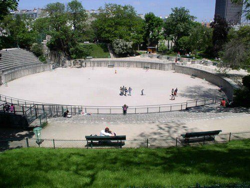 La Lutèce gallo-romaine, qui voit se reconstruire l’île de la Cité, se développe sur la rive gauche, à l’abri des inondations. Là, sur les pentes de la montagne Sainte- Geneviève, s’établit une cité à la romaine, de part et d’autre de la voie principale, le cardo, dont on retrouve le tracé dans la rue Saint-Jacques. Un peu à l’écart, adossé au versant oriental de la colline, est construit vers la fin du Ier siècle après J.-C. un édifice, connu sous le nom d’Arènes de Lutèce, qui servait en réalité tout aussi bien pour les jeux du cirque que pour les représentations théâtrales, comme en témoigne la scène qui vient interrompre les gradins sur un côté.