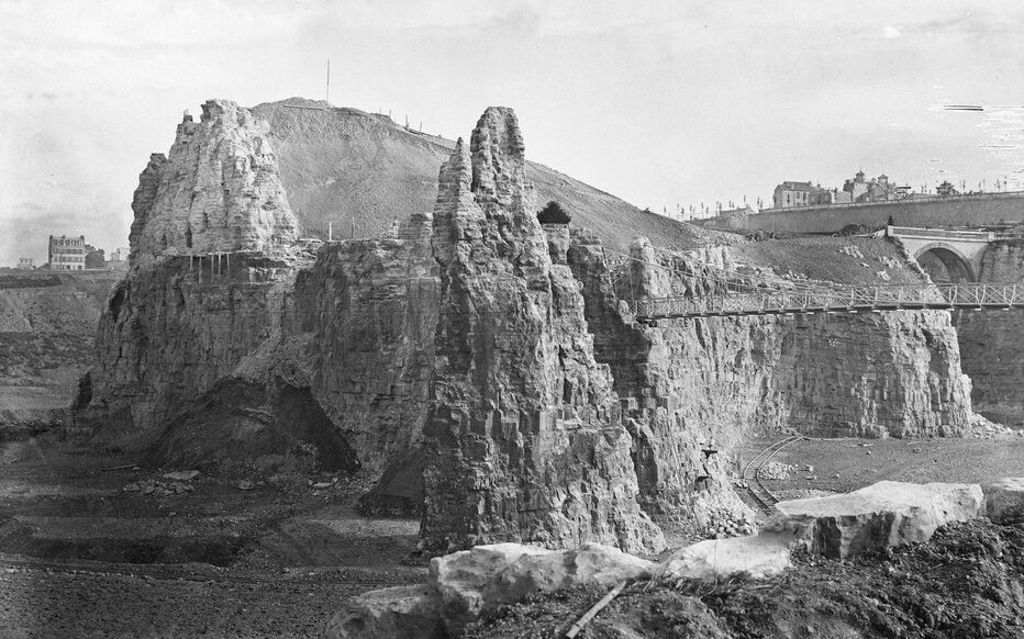 Travaux d'aménagement du parc des Buttes Chaumont, inauguré en 1867.