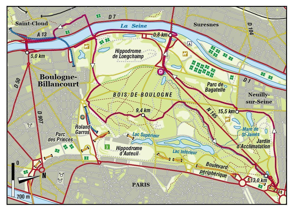 Aujourd’hui, si le bois de Boulogne n’a pas toujours bonne réputation, surtout la nuit, il offre dans la journée un agréable dépaysement et de nombreux divertissements, avec ses 846 hectares qui conservent, pour l’essentiel, leur tracé de promenade à l’anglaise du Second Empire. Le bois possède de nombreuses espèces et l’on y trouve en quantités à peu près égales chênes, érables, hêtres, charmes, marronniers, tilleuls, pruniers, platanes et robiniers, tous plantés après 1815.