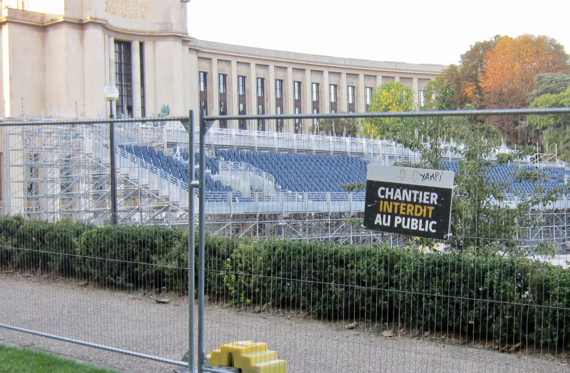 Tandis que la partie centrale des jardins est interdite au public et que l'on n'aperçoit plus que l'impressionnant squelette de la fontaine de Varsovie.