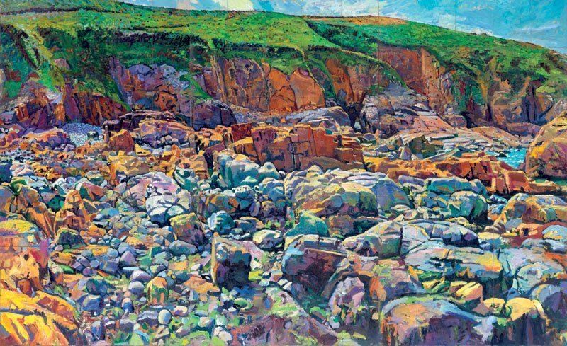 Autant de grands maîtres qui inspirent ses propres recherches picturales : des paysages monumentaux composées de petits fragments rectangulaires où, entre figuration et abstraction, la matière se confronte à la lumière.